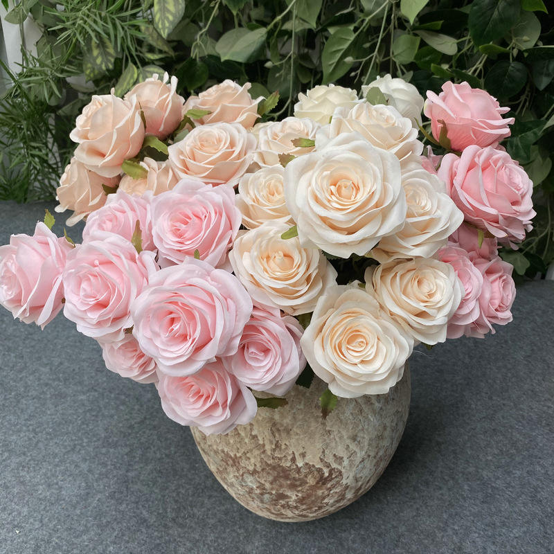 Hot best Seller Nora rose fiori artificiali 9 teste per la laurea di natale decorazioni di pasqua di san valentino