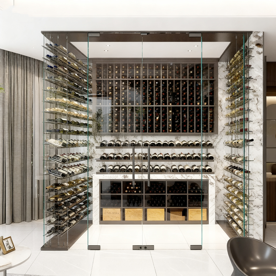 Mobile Bar da Salotto di Tendenza in Vetro Trasparente Cantinetta Portabottiglie Espositore per Bottiglie