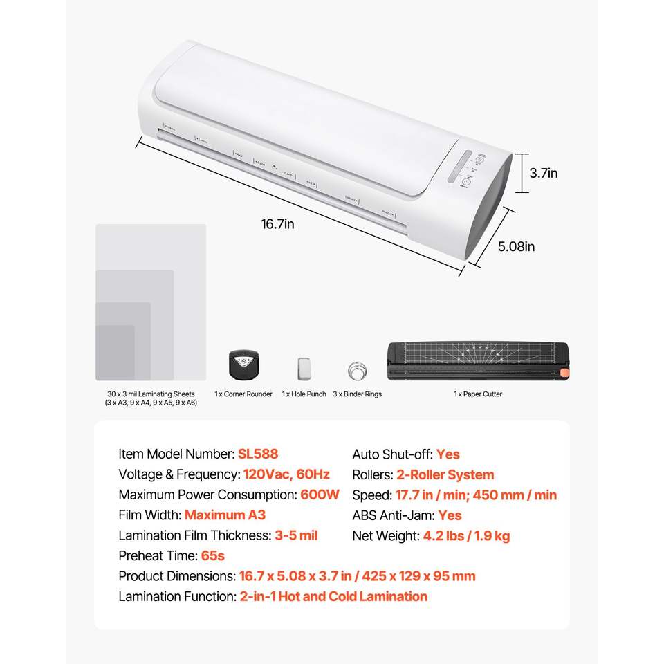 Macchina per Laminazione a Caldo e Freddo per Formato Max A3, Laminatore Termico Rapido in 1 Minuto, Spessore 3-5 Mil per Uso Ufficio