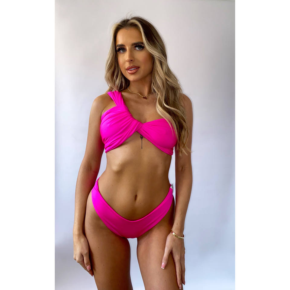 Hot pink rouched bandeau one shoulder bikini top pea Street