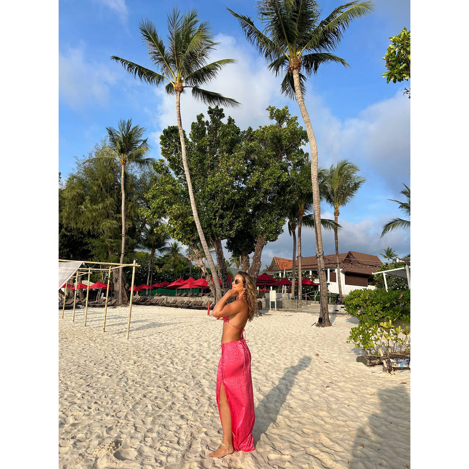 Maxi gonna con spacco laterale in raso rosa caldo con stampa pelle di serpente