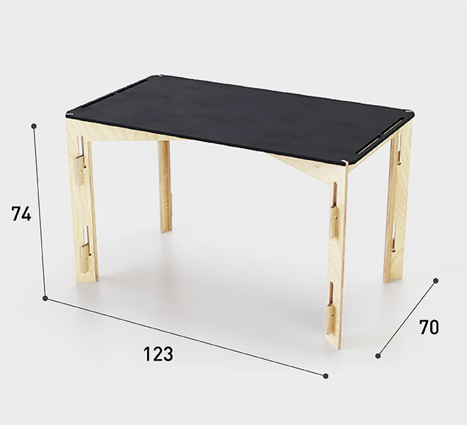 Top material:Black MDF Valchromat, 12 mm thick / white laminate