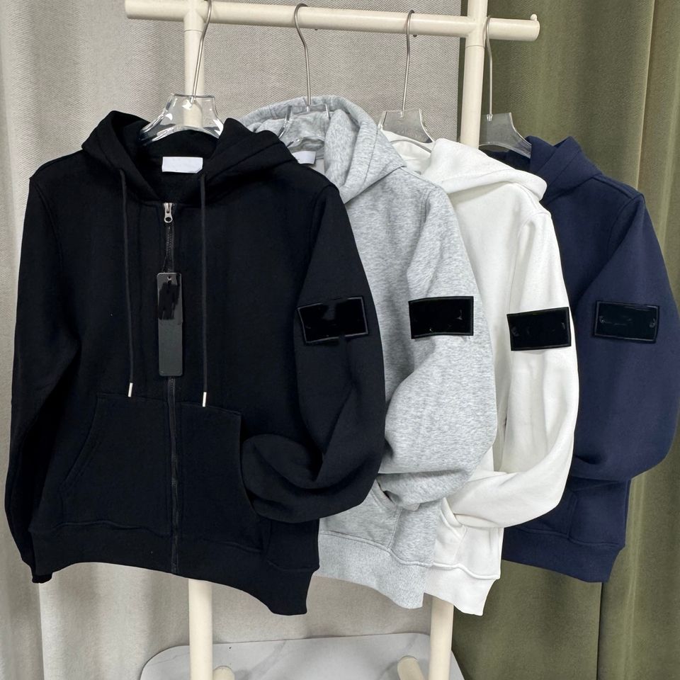 Felpa con Cappuccio Stile Americano di Tendenza con Imbottitura Aggiunta e Ricamo in Cotone Spesso per Uomo