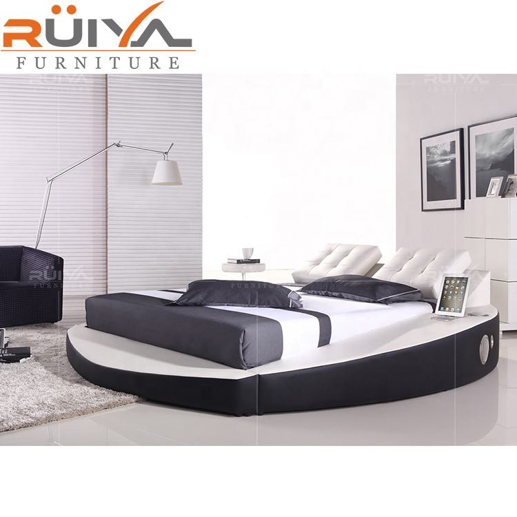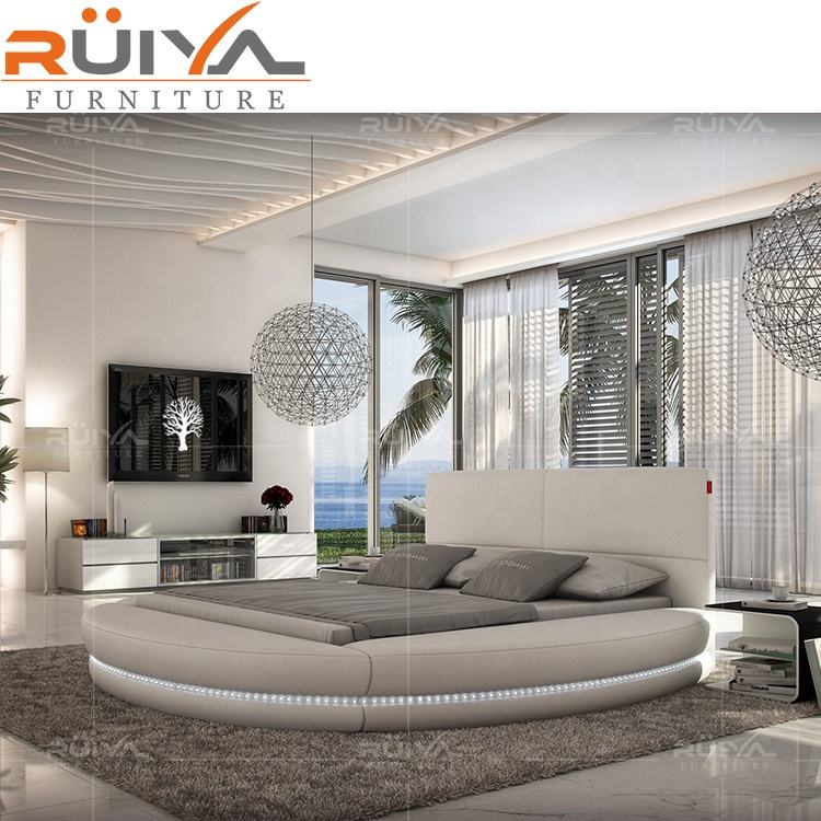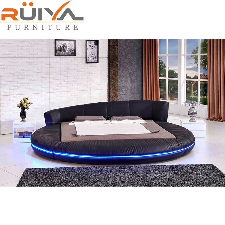 hot-selling fashion design western style king size soft round bed frame with LED Light