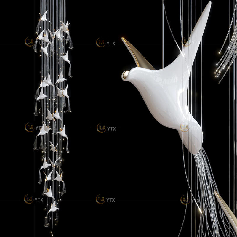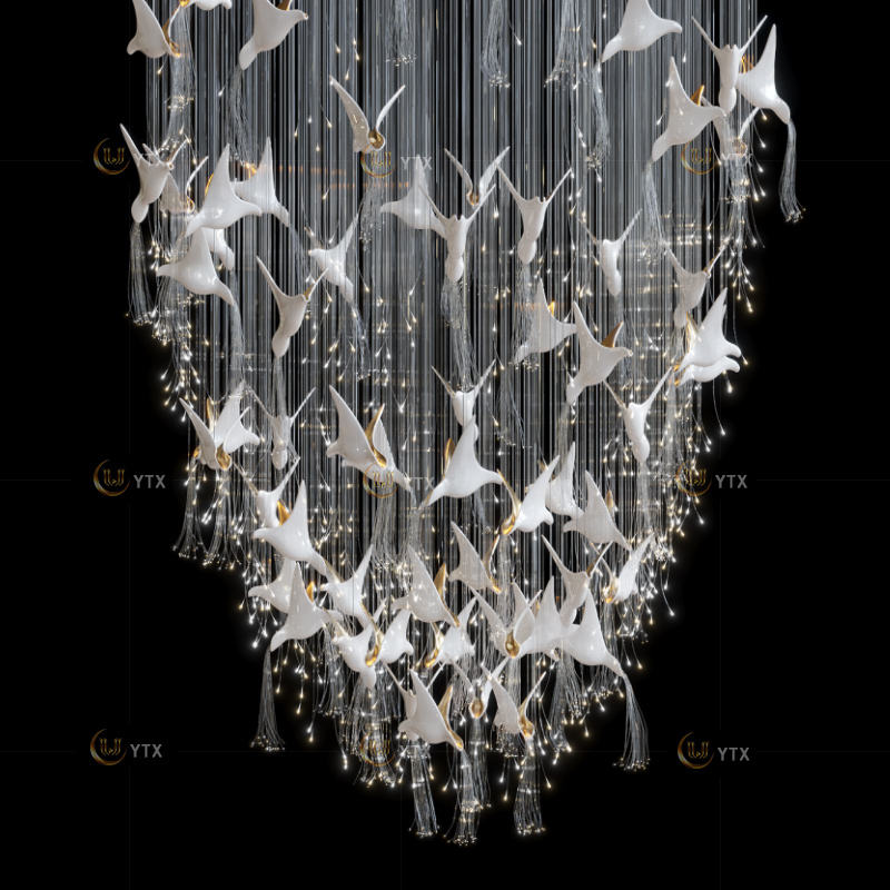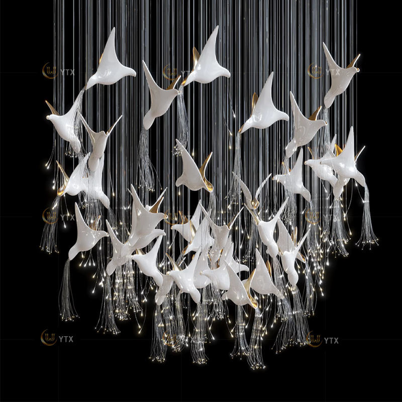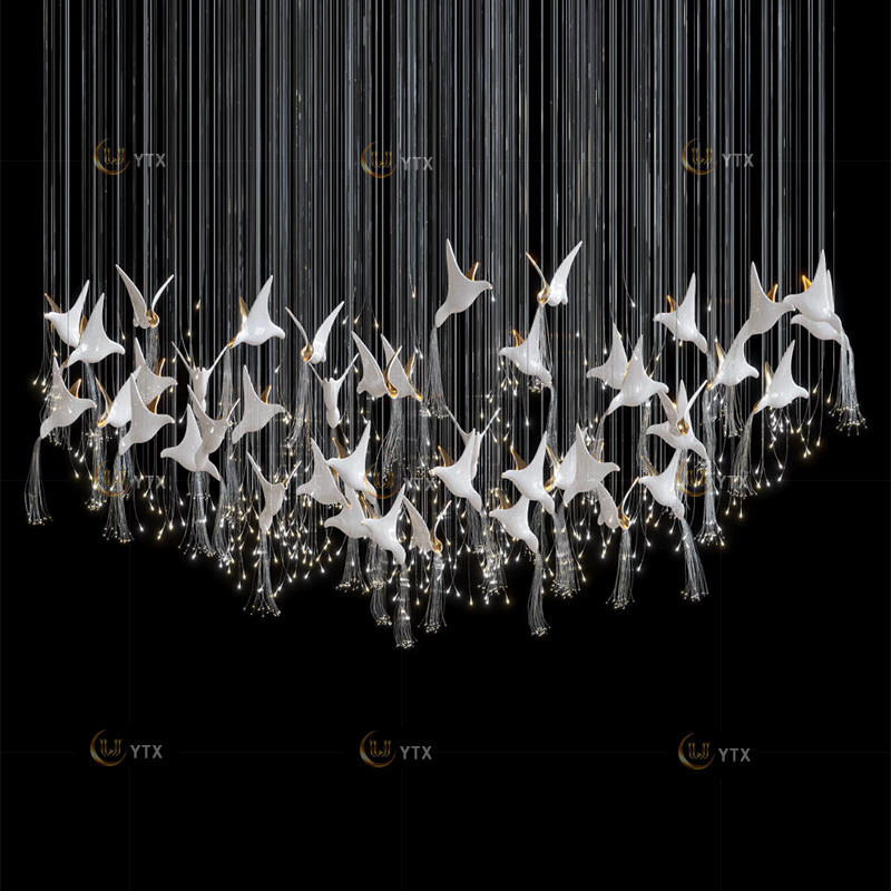 Lampadario Moderno in Ceramica a Forma di Rondine per Lobby di Hotel e Sale da Pranzo, Lampada a Sospensione Artistica in Vetro