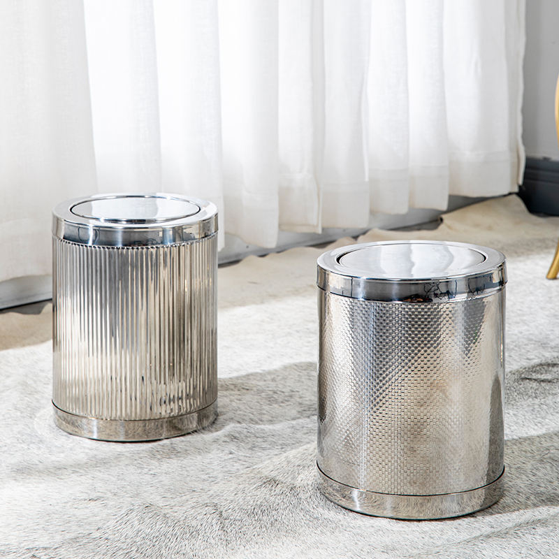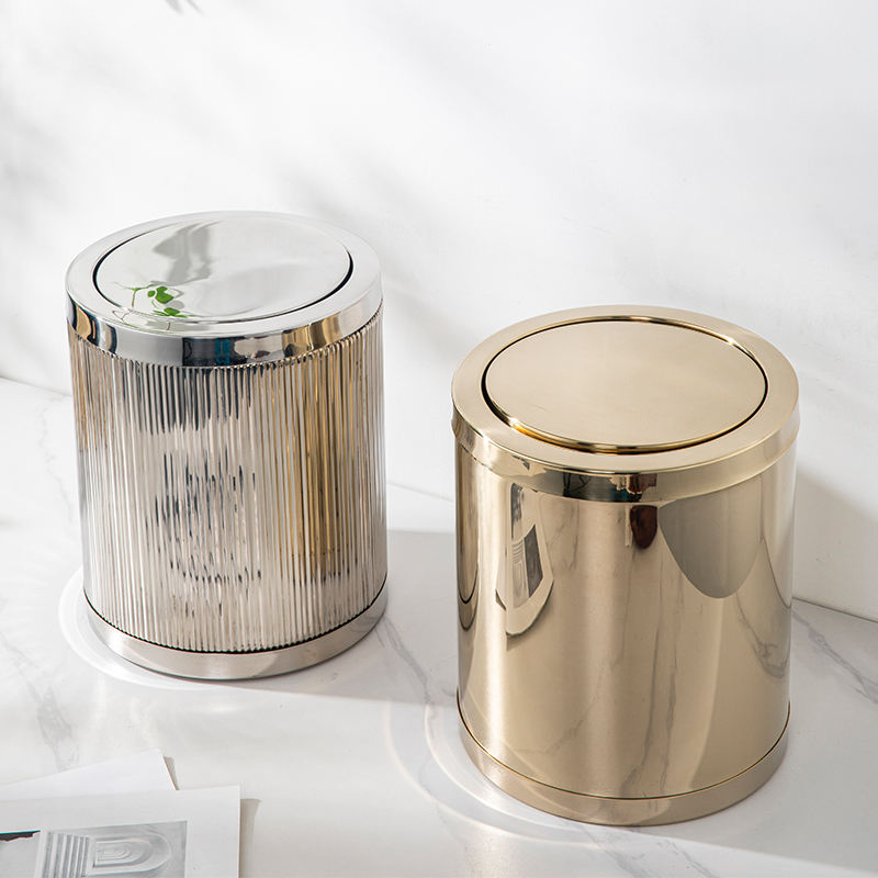 Bidoni in metallo per Hotel cestino per rifiuti in acciaio inossidabile 304 a doppio strato all'ingrosso personalizzato cestino per bagno di lusso con copertura rotante