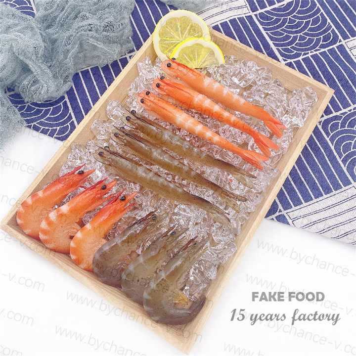 Oggetti di scena dell'esposizione del ristorante dell'hotel modelli di gamberetti cotti in plastica di frutti di mare finti realistici per la decorazione di eventi di festa di natale di Halloween