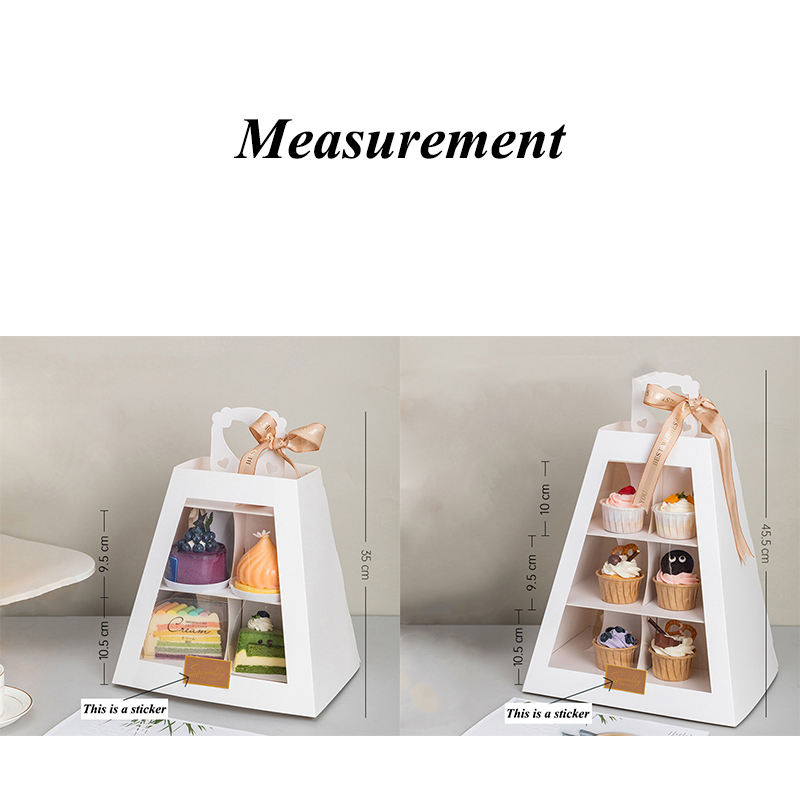 Durable Food-Grade Paper Material: Our hotel takeaway cupcake stand is made from high-quality food-grade paper, ensuring a safe and secure packaging solution for your desserts and pastries.