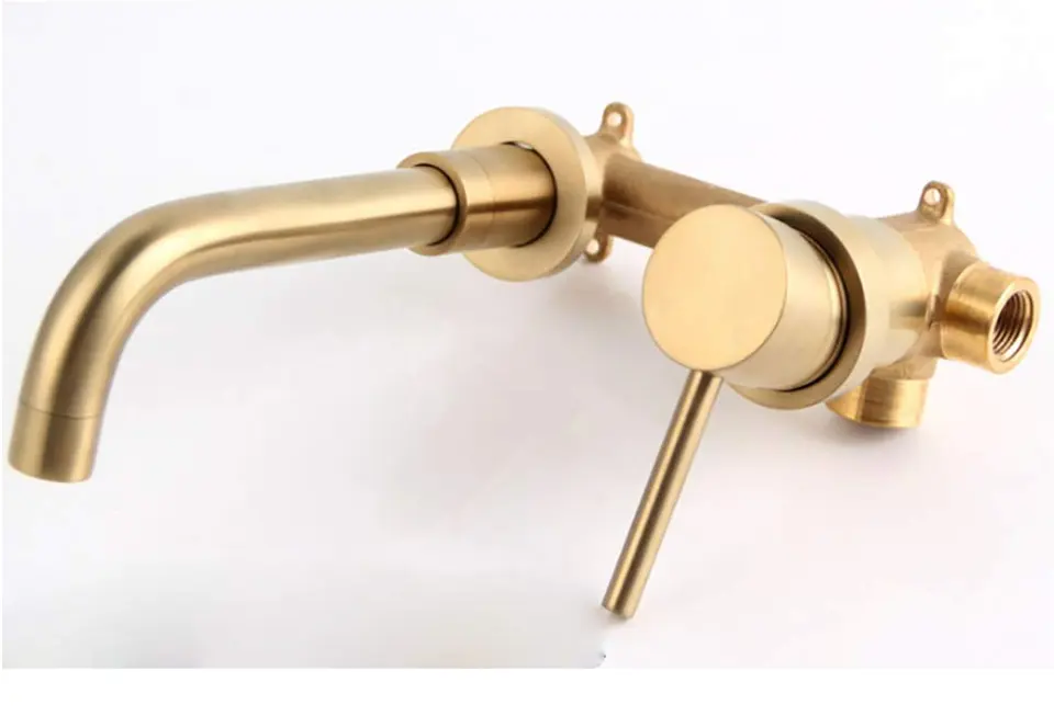 Hotel Two Hole Wall Mounted Faucet Brass Bathroom Sink Single Handle Taps Brushed Gold Basin Faucet