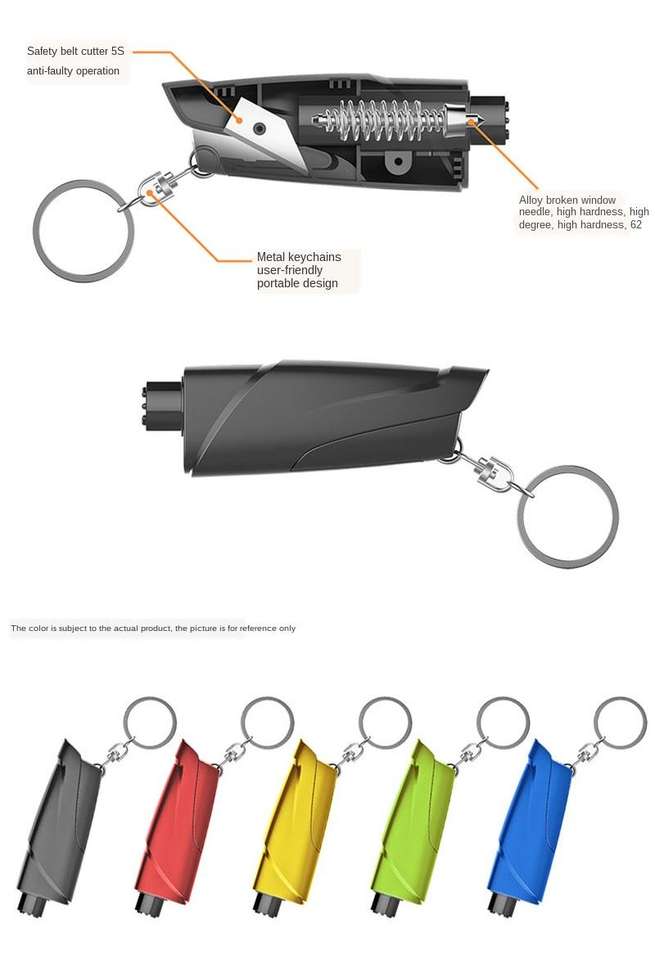 Kit di Emergenza Hotsale Portachiavi, Tagliacintura di Sicurezza, Martello Frangivetro per Auto in ABS+Acciaio, Rompivetro per Autodifesa Femminile
