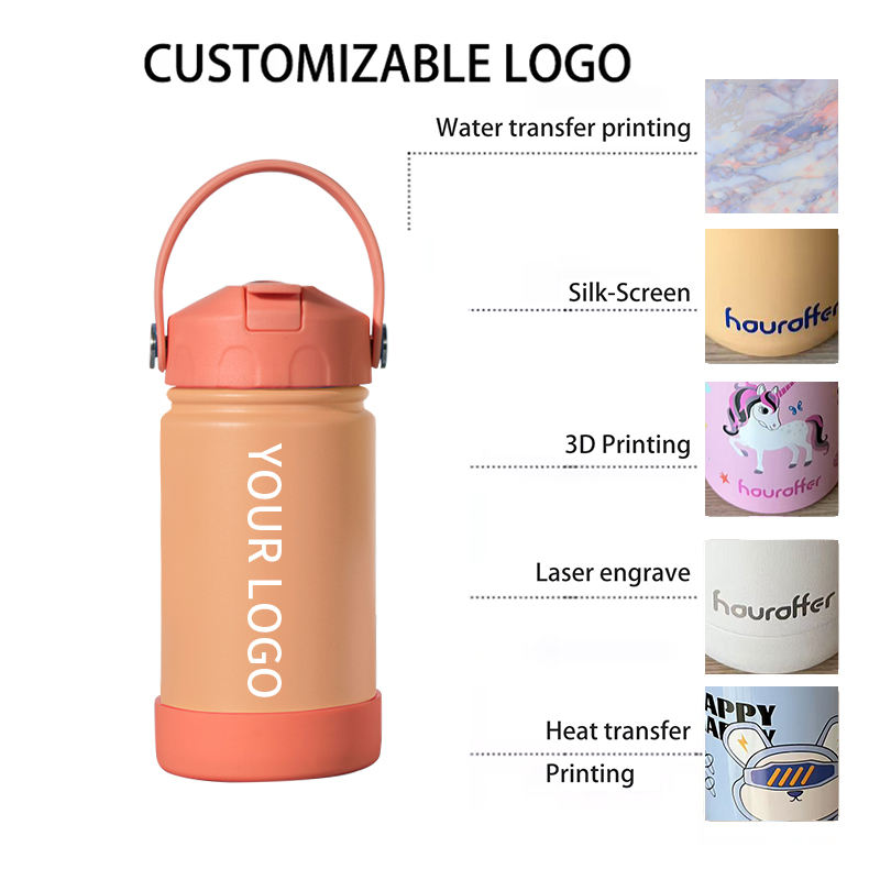 Houroffer Borraccia Termica in Acciaio Inox da 12oz con Logo Personalizzato, Bottiglia d'Acqua a Doppia Parete Isolata per Regali Aziendali con Coperchio Sicuro