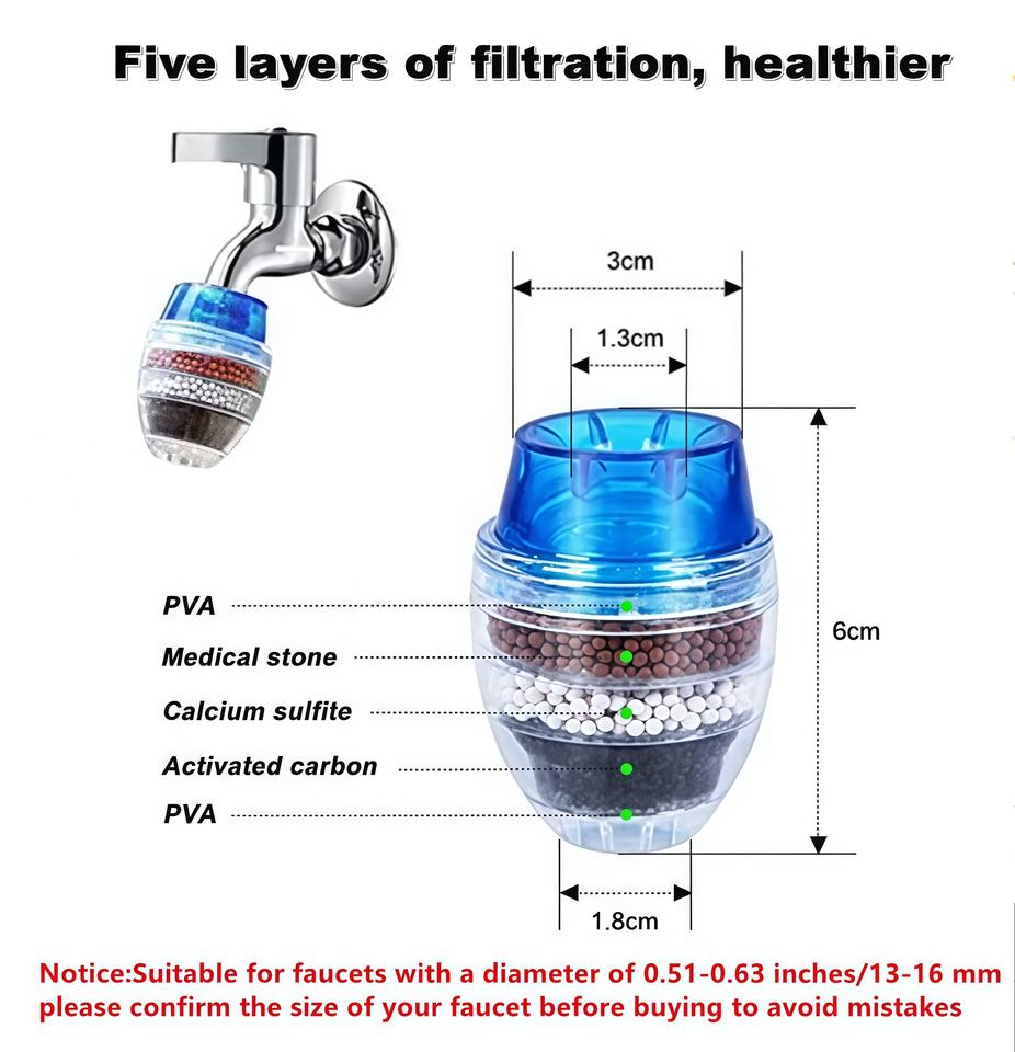 Depuratore d'Acqua per Rubinetto da Cucina Domestico, Filtro a 5 Strati con Carbone Attivo per Filtrazione e Purificazione dell'Acqua