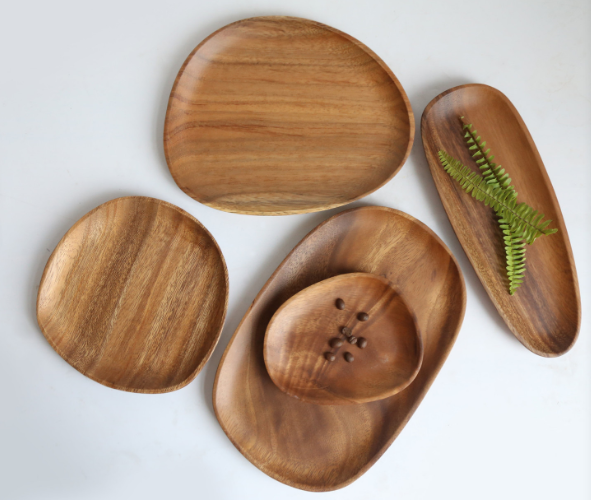 Household Kitchen Items Accessories Wooden Serving Plate Set Acacia Wood Irregular Shaped Dish and Plate
