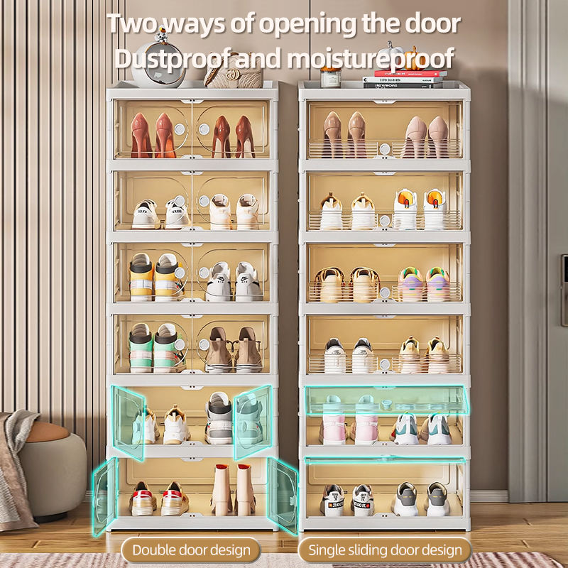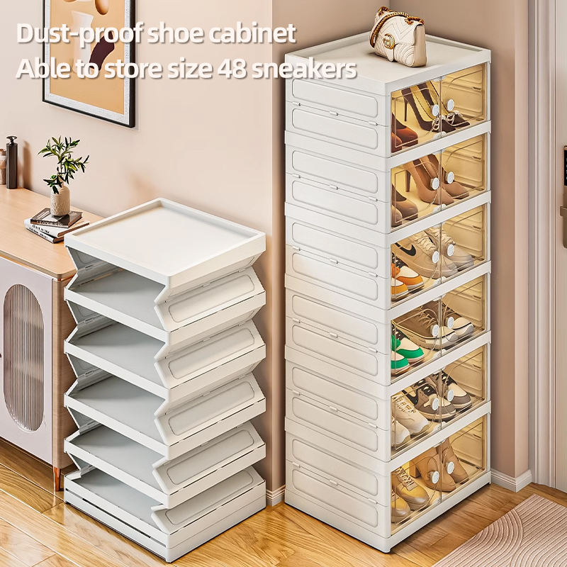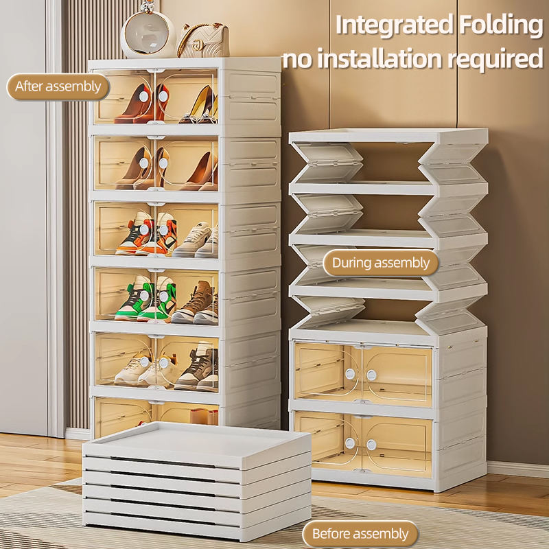 Household Magnetic Folding Shoe Rack 3/6/9 Layers Clear Plastic Storage Containers Collapsible Sneakers Organizer Living Room
