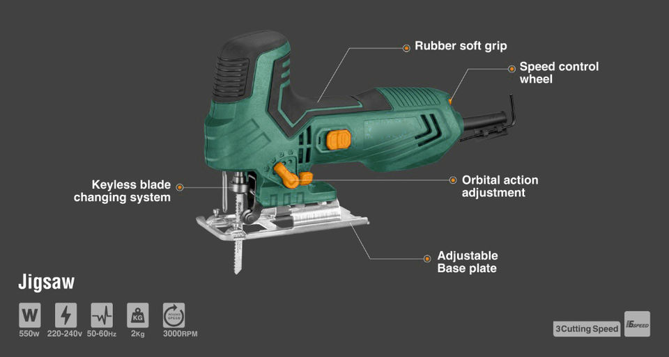 Include:Lama di legno, connettore per tubi di polvere, chiave inglese, righello guida