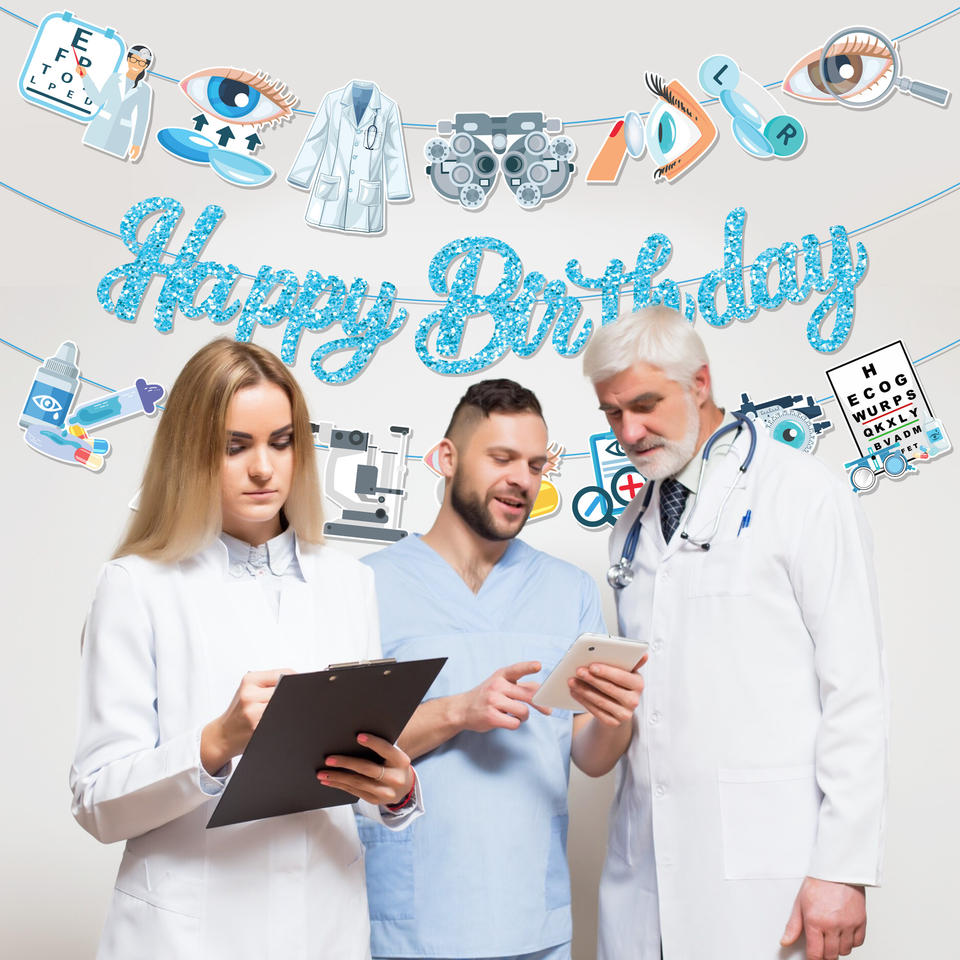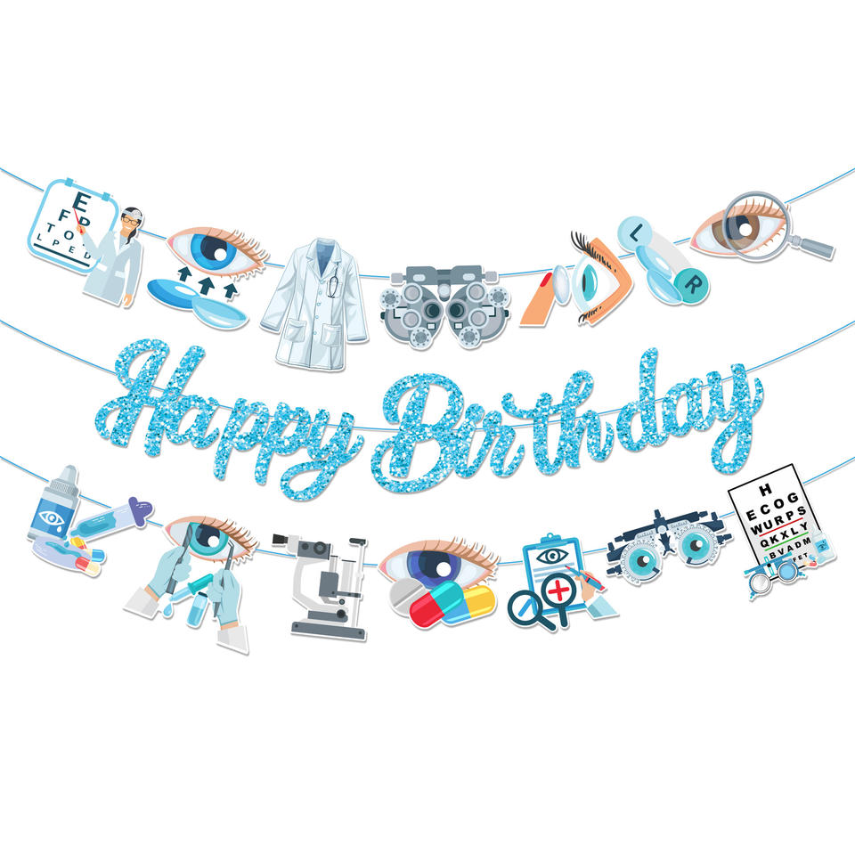Huancai Eye Doctor Happy Birthday Banner Ophthalmologist Paper Garland Hanging Bunting for Birthday Nurse Day Party Supplies