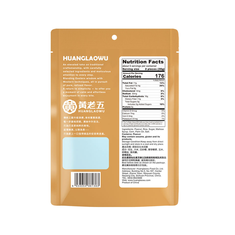 Huanglaowu Sweet Chinese Food Product HALAL Food Puffed Rice Bars Original Flavor Grain Snack for On-the-Go