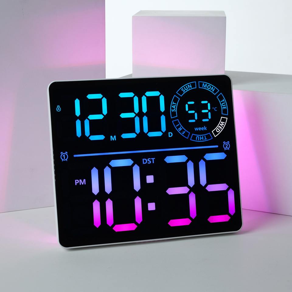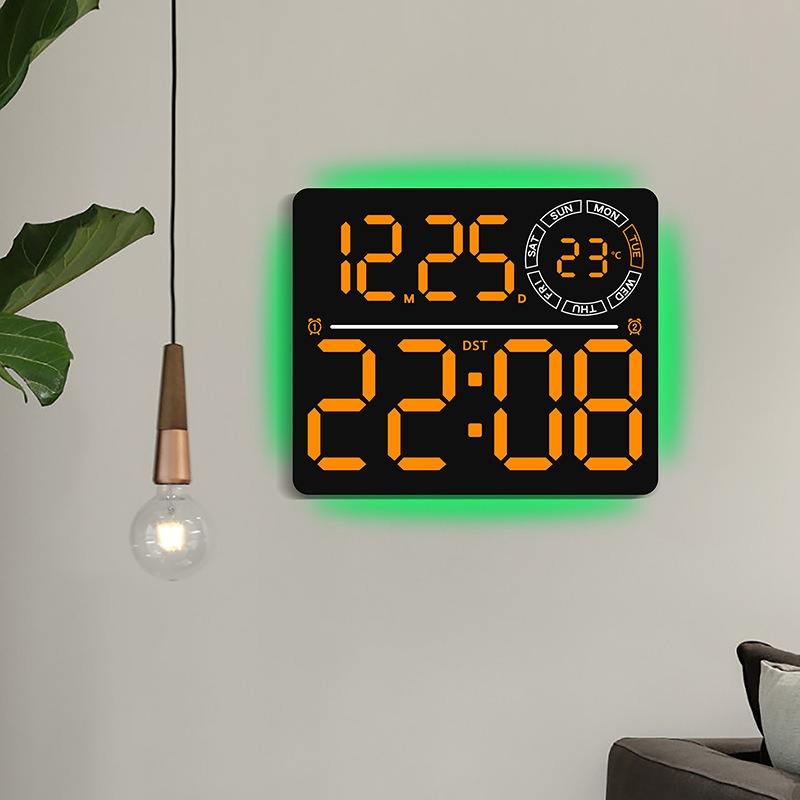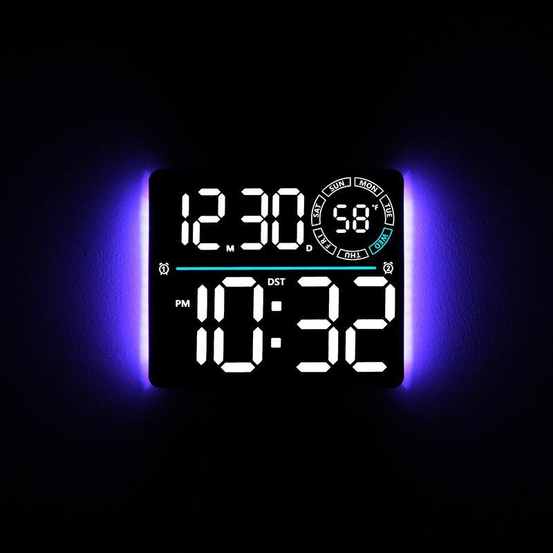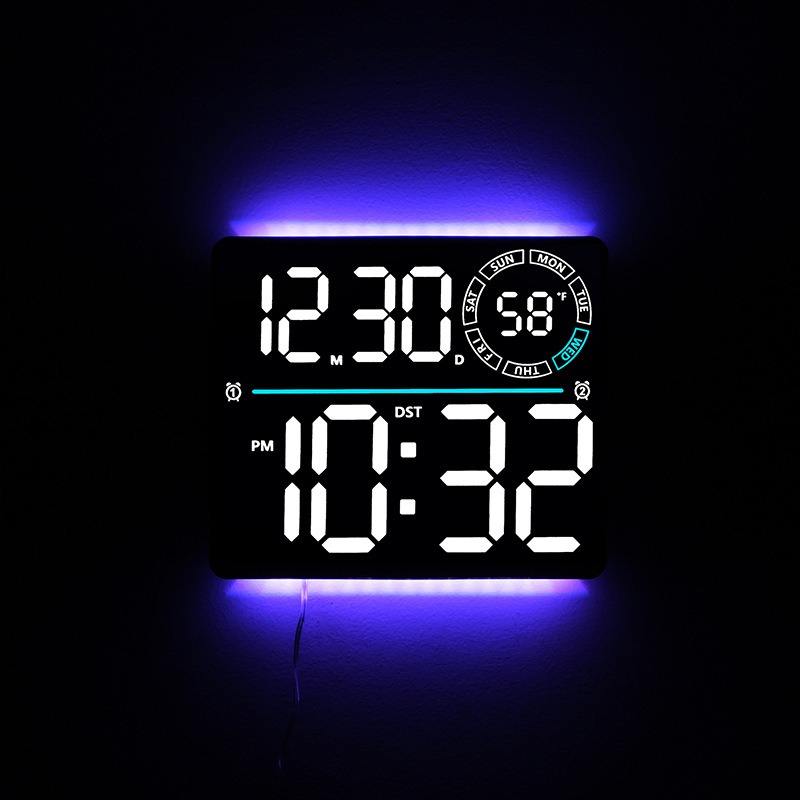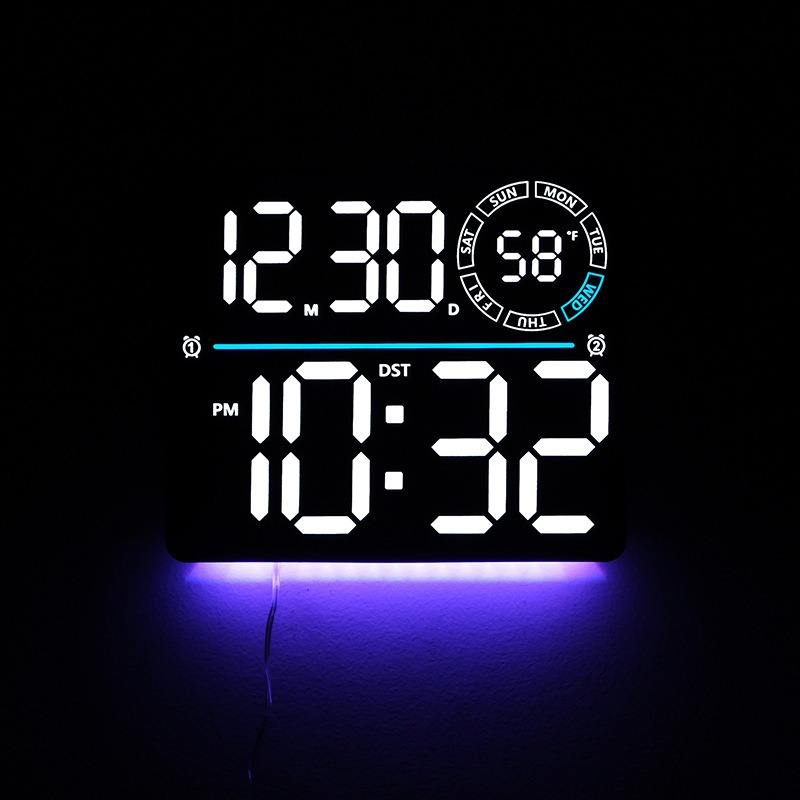 Orologio da Parete LED Multifunzione Huayang 6692 con Display Settimanale, Telecomando, Doppio Allarme, Timer, Luce Ambientale RGB, Decorazione per la Casa