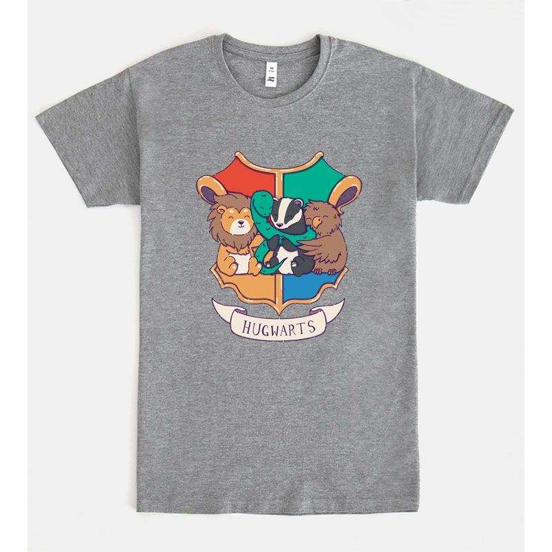 T-shirt Hugwarts grigia girocollo unisex per adulti taglia media