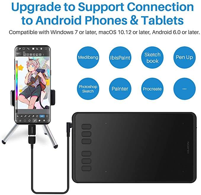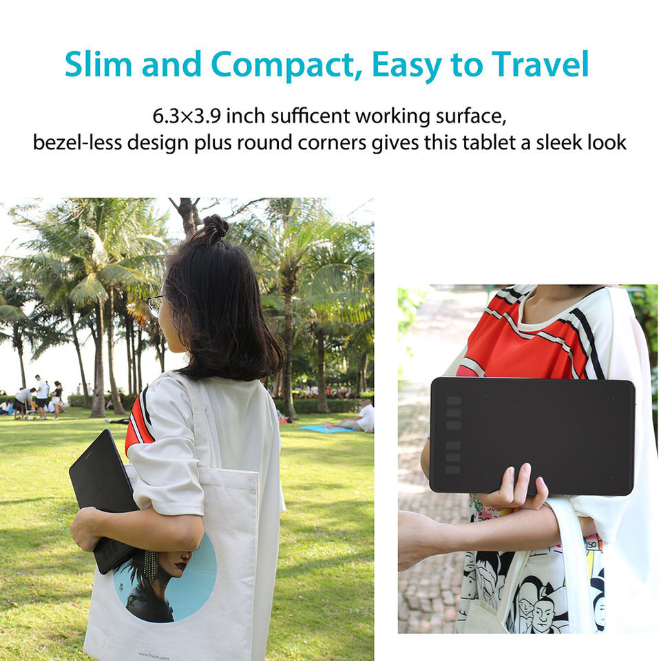 Portable and Versatile Design: The Huion H640P is a compact and lightweight graphic tablet that can be easily carried around, making it perfect for artists, designers, and professionals who need to create on-the-go. It's compatible with Windows 7 or later, macOS 10.12 or later, and Android 6.0 or later, catering to various user preferences.