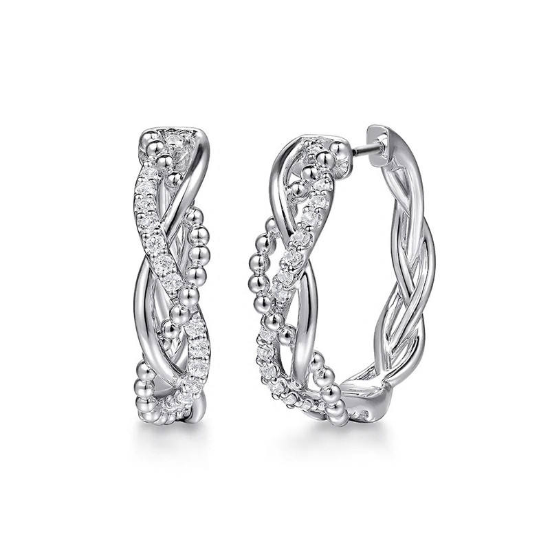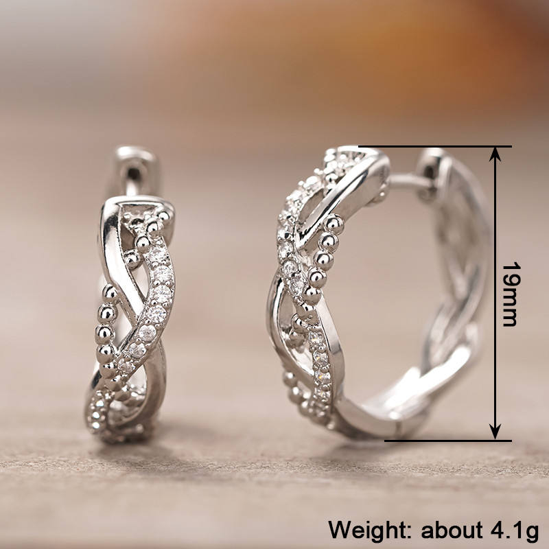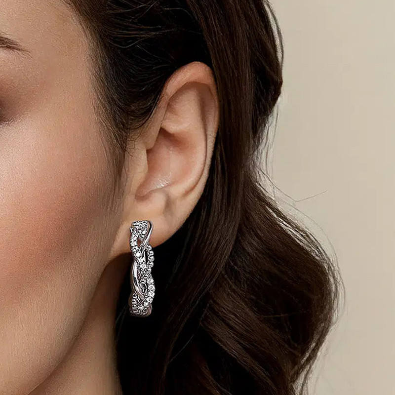 Huitan Dazzling CZ Crystal Earrings Silver Tone Twist Design Hoop with Temperament Circle Chic and Elegant