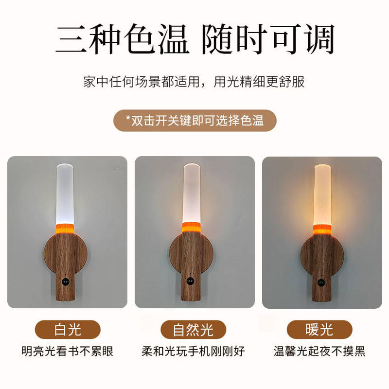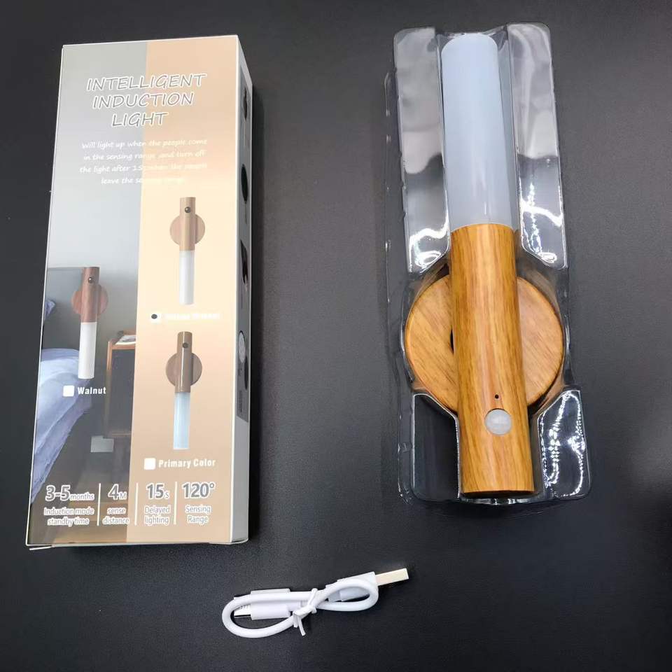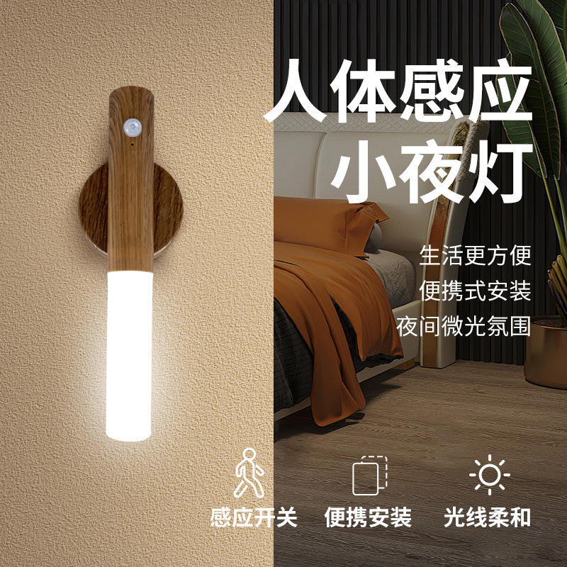 Luce Notturna con Sensore di Movimento, Effetto Legno, Ricaricabile, Luce d'Atmosfera Magnetica, Accessori per Gaming