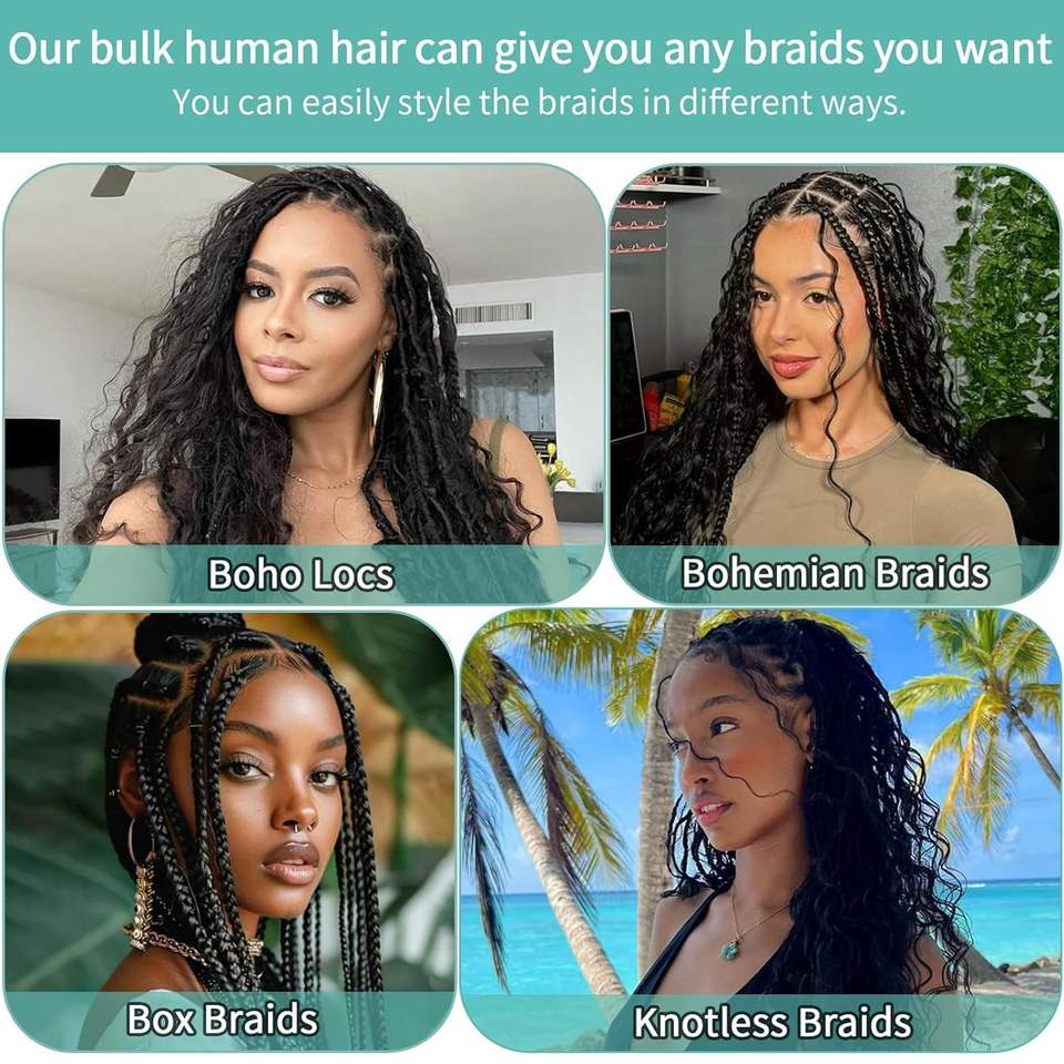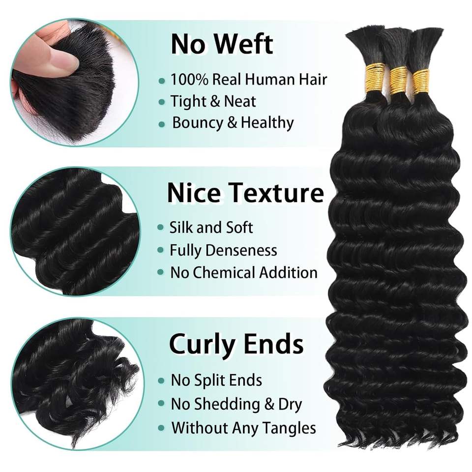 Capelli Umani per Intrecciare, Trecce Boho 110g 20 Pollici Ricci Senza Nodi 12A Onda Profonda, 3 Fasci/Confezione Colore Naturale