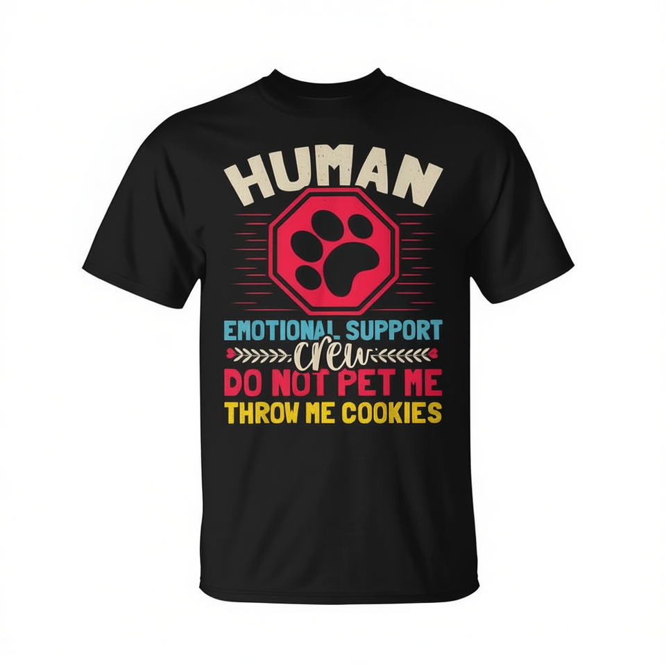 T-shirt unisex per adulti con stampa serigrafica Human Emotional Support, con scritta: Non accarezzarmi, getta mi biscotti