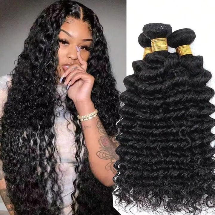 Fasci di capelli umani con chiusura in profondità ricci e sciolti con chiusura in pizzo brasiliano capelli umani onda trama di capelli grezza