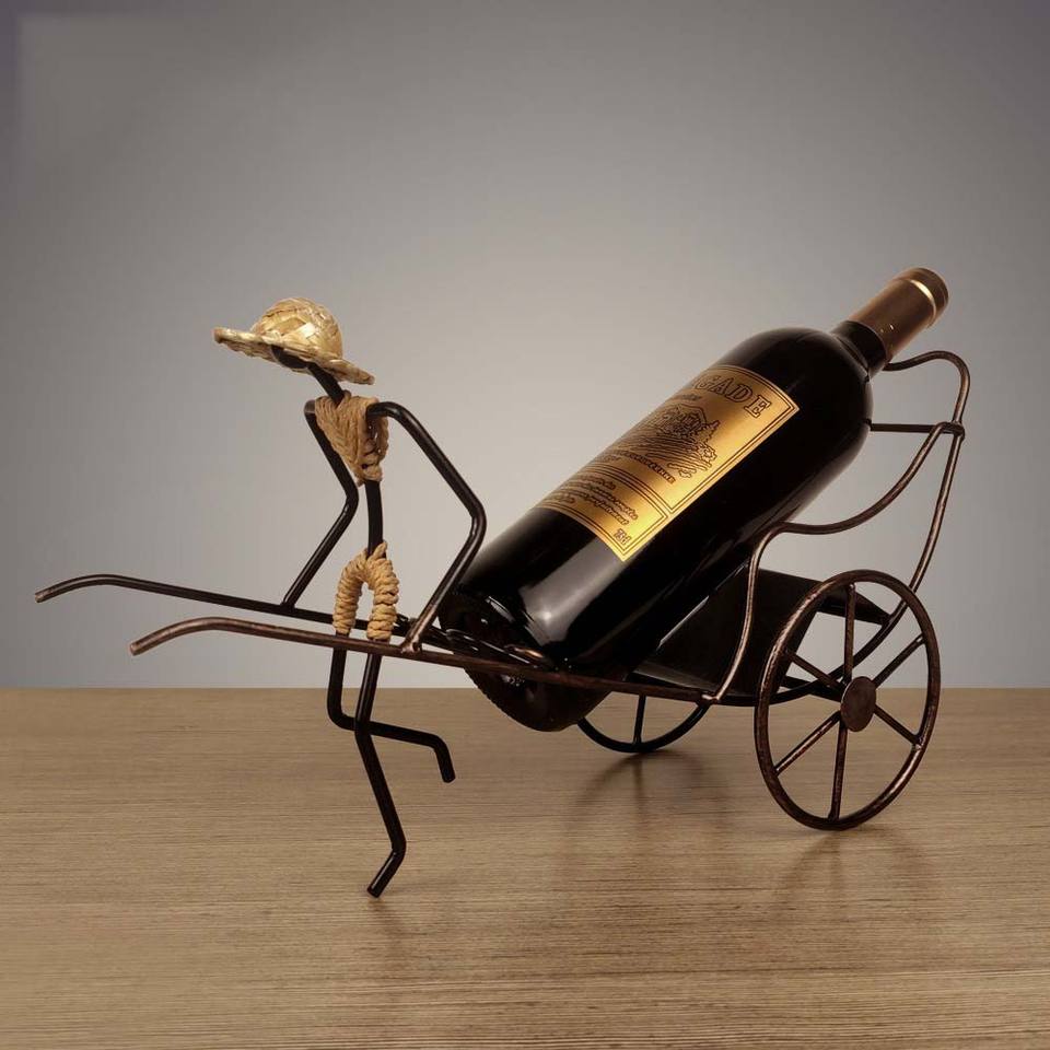 Portabottiglie in ferro battuto retrò risciò umanoNome del prodotto