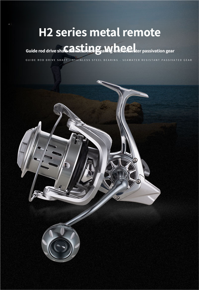 Hunting Fishing King ELEHUA Metal Spinning Reel High Speed 5.2:1 Gear Ratio 7+1 Bearings Long-Range Casting Right Hand H2-12000
