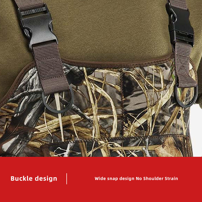 Waders da Caccia con Stivali in Gomma Termici da 200G, Impermeabili con Suola Chiodata in Neoprene, a Stivale Intero per Pesca