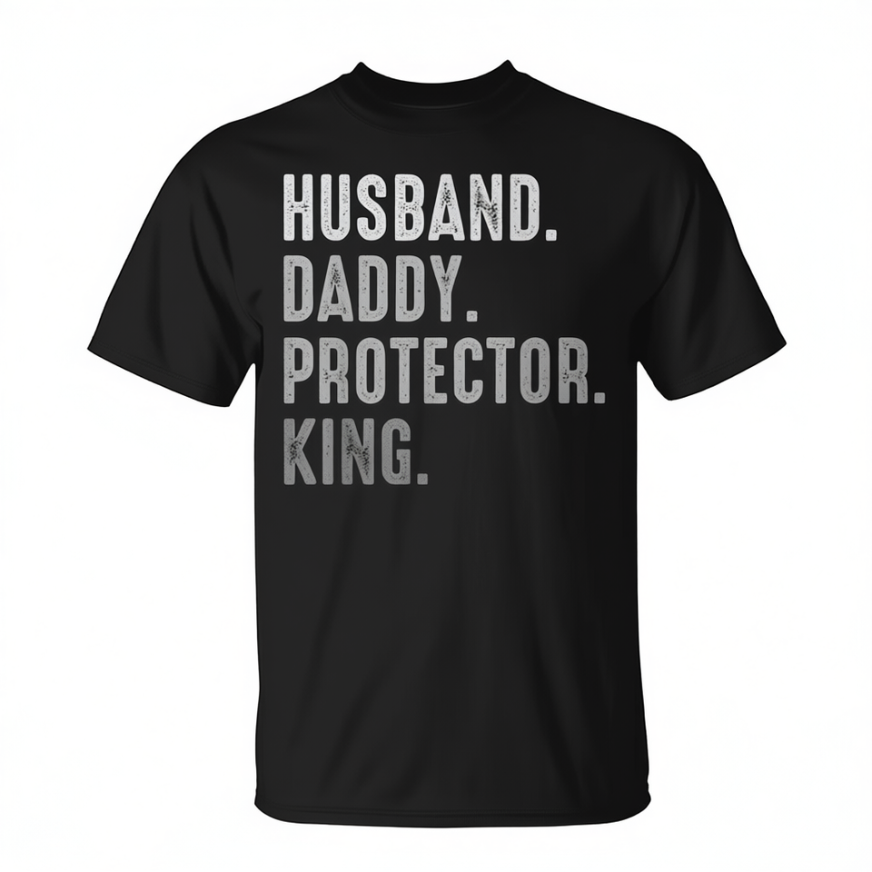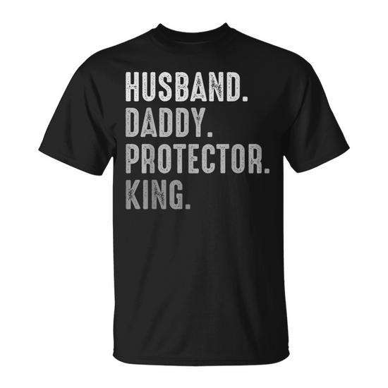 T-shirt da uomo con scritta 'Husband Daddy Protector King', girocollo, manica corta, per adulti, per riunioni di famiglia
