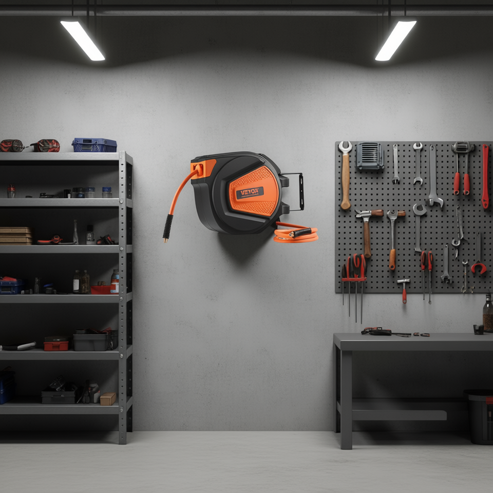 Avvolgitubo Pneumatico Ibrido Retrattile da 3/8 Pollici x 50 Piedi, 300 PSI, Montaggio a Parete, Accessorio per Utensili Pneumatici