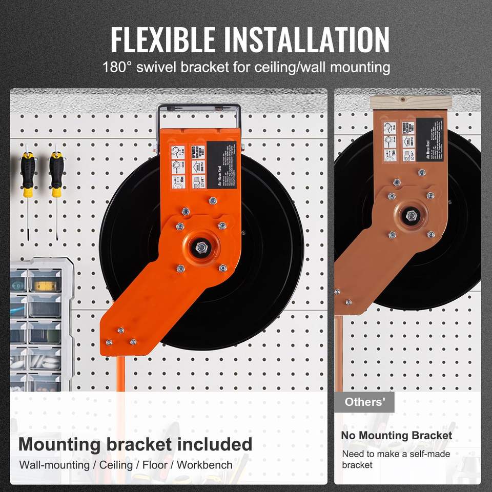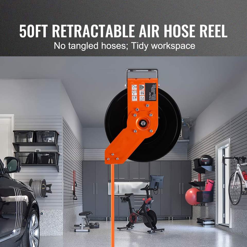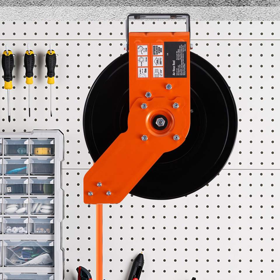 Avvolgitubo Ibrido Retrattile 3/8 X 50 FT 300 PSI per Aria Compressa, Montaggio a Soffitto/Parete, Strumento per Riparazioni Auto con 5 Prese Interne