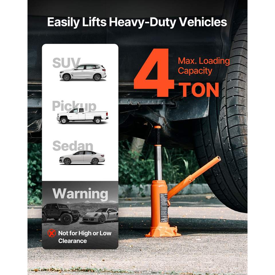 Martinetto Idraulico a Bottiglia Saldato per Carichi Pesanti da 4 Tonnellate (8818.4 Libbre) per Auto e SUV, Intervallo di Sollevamento 7.3-13.8 Pollici