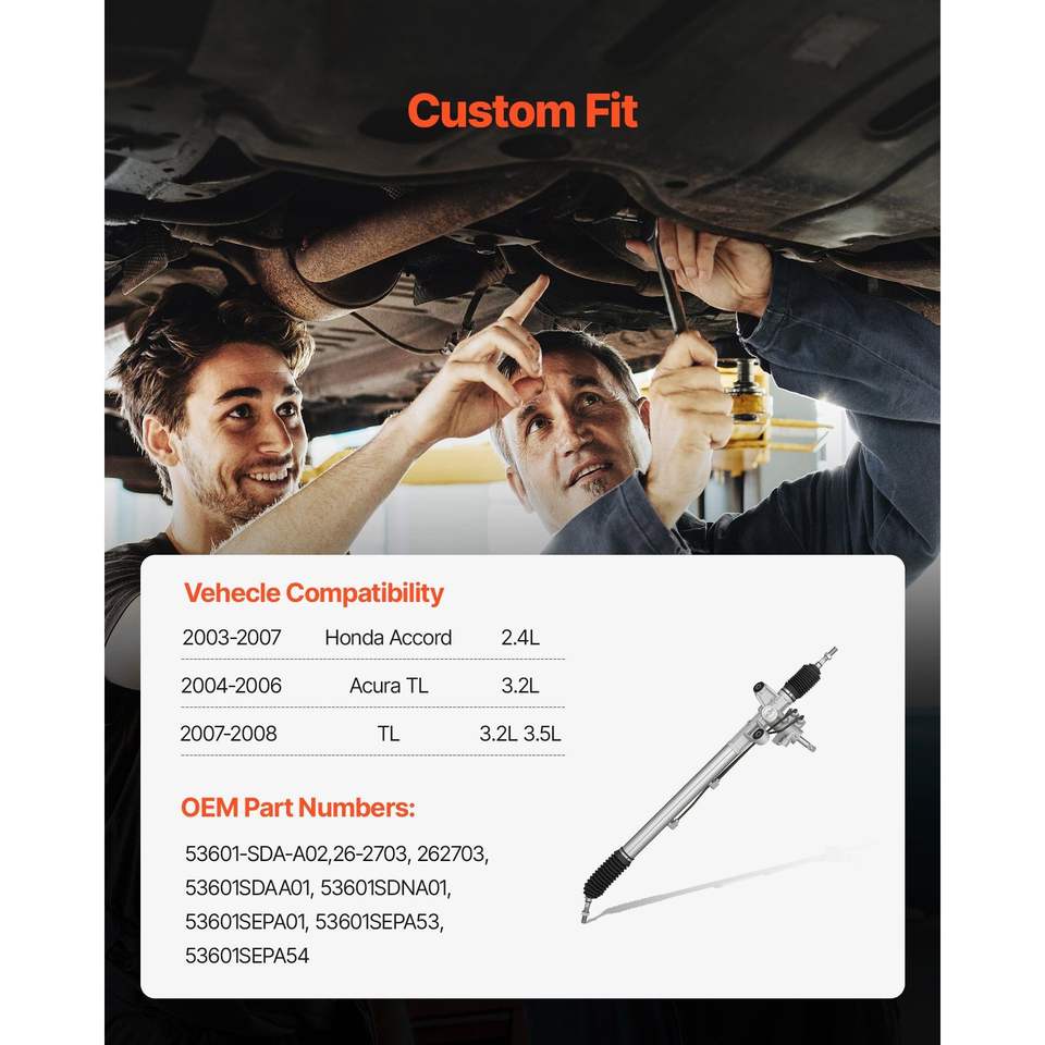Hydraulic Power Steering Rack Pinion Assembly Dust Boot Compatible 2003-2007 for Honda Accord 2004-2006 Acura TL 3.2L 2007-2008