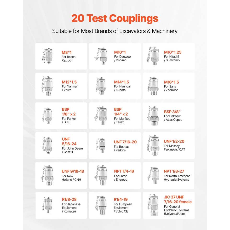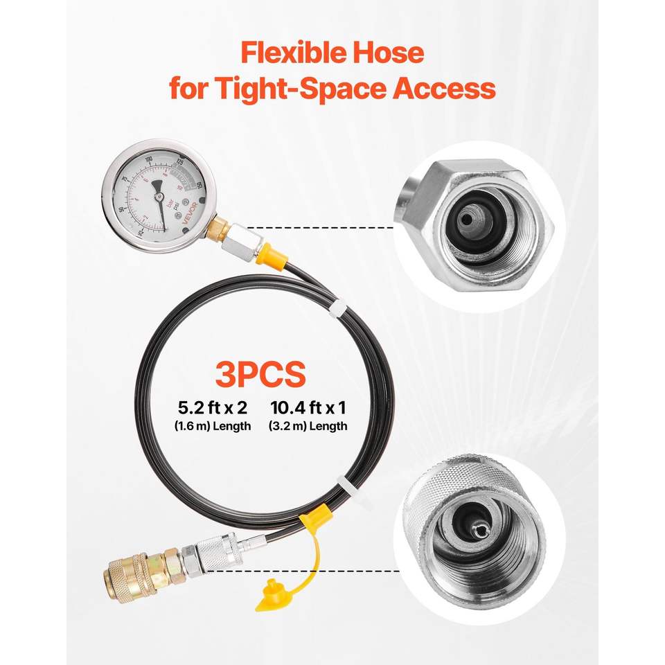 Kit di Prova per Pressione Idraulica per Edilizia, 5 Manometri, 20 Raccordi, 4 Quotificazioni 150/900/2300/6000/9000 PSI (10/60/160/400/600