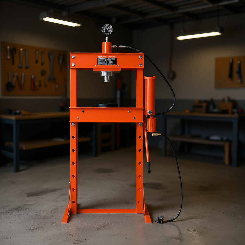 Pressa Idraulica da Officina 30 T con Telaio a H, Valvola di Scarico Pneumatica Regolabile, Supporto Triangolare per Garage