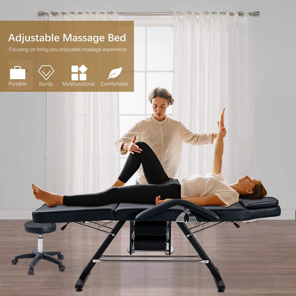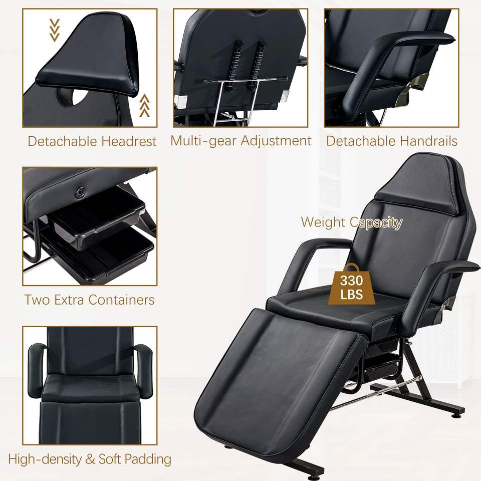Lettino Idraulico Multifunzione a 3 Sezioni per Estetiste, Sedia per Tatuaggi con Due Vassoi, Lettino da Massaggio Regolabile per Salone