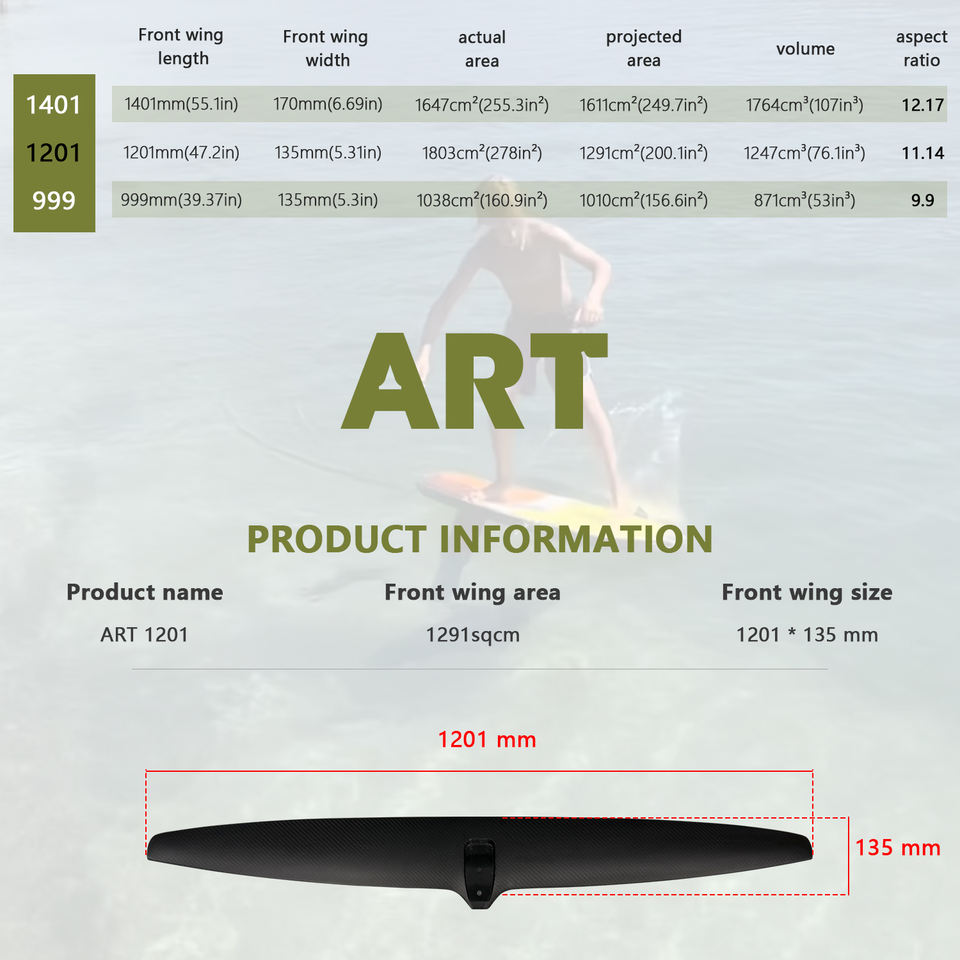 Ala Idrofoil ART 1201 in Carbonio per Acque Offshore, Riders di Livello Intermedio, Sollevamento Rapido, Lunga Distanza, Controllo Stabile, AXIS