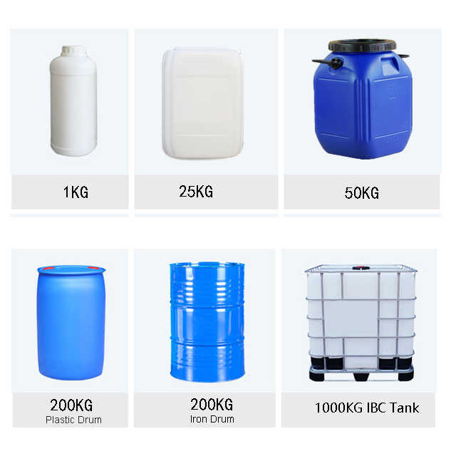 25kg/drum,50kg/drum,200kg/drum and 1000kg/IBC tank,etc.We can be customized according to customer needs.
