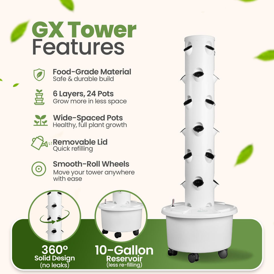 Kit Sistema di Coltivazione Idroponica a Torre con 24 Vasi a Rete (Grado Alimentare Senza Luci) - Accessori per Giardinaggio Domestico