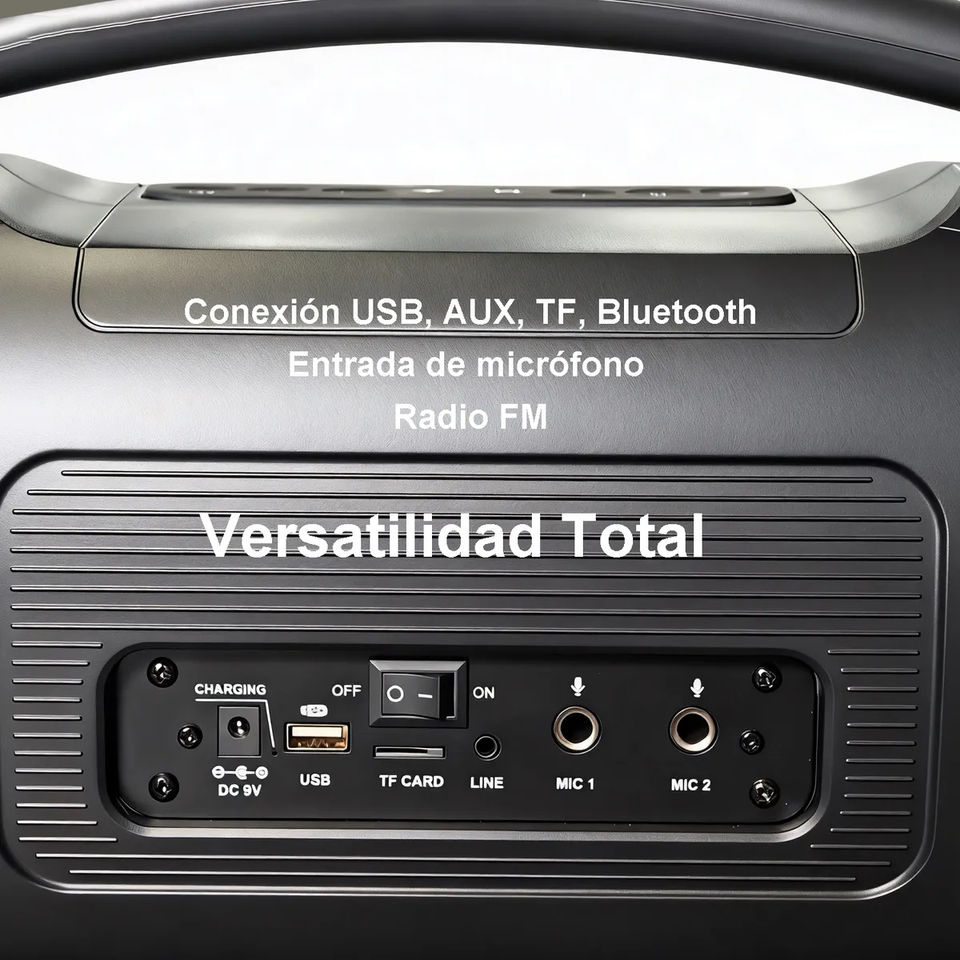 Altoparlante Portatile Hype V5.5 con Ingressi USB e Aux, Potenza 60W, Luci LED RGB, Batteria Ricaricabile da 5 Ore, Nero