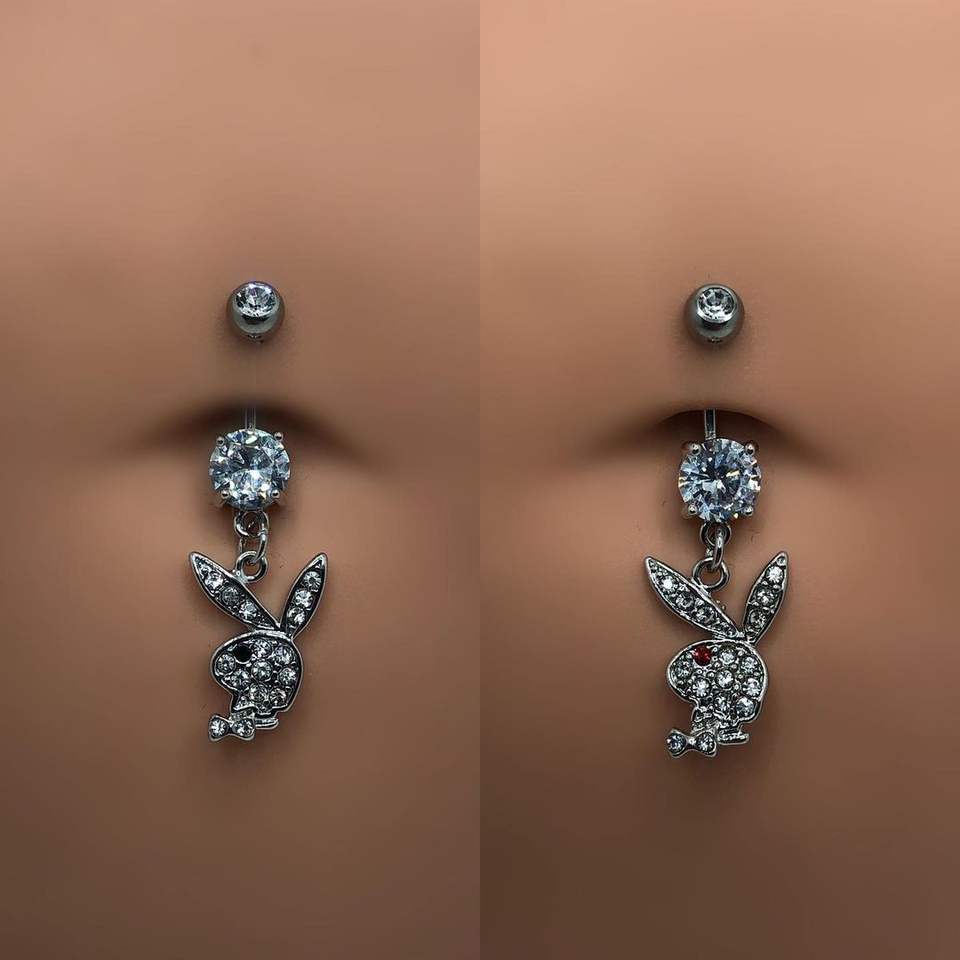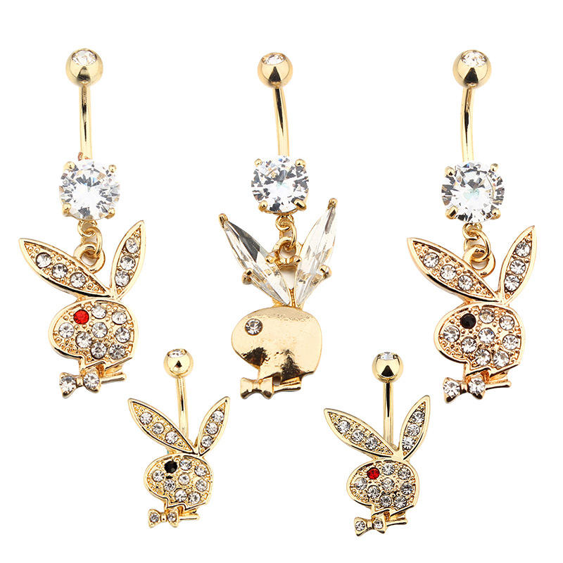 Hypoallergenic 316L Stainless Steel Body Piercing Rabbit Bunny Play Boy Dangle Navel Ring Belly Button Ring