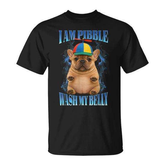 T-shirt con stampa digitale a maniche corte girocollo unisex per adulti con meme I Am Pibble Wash My Belly Pit Bull Dog