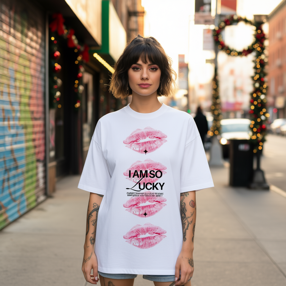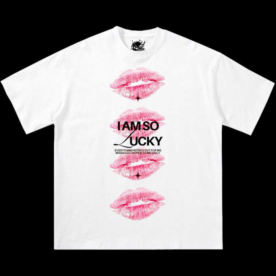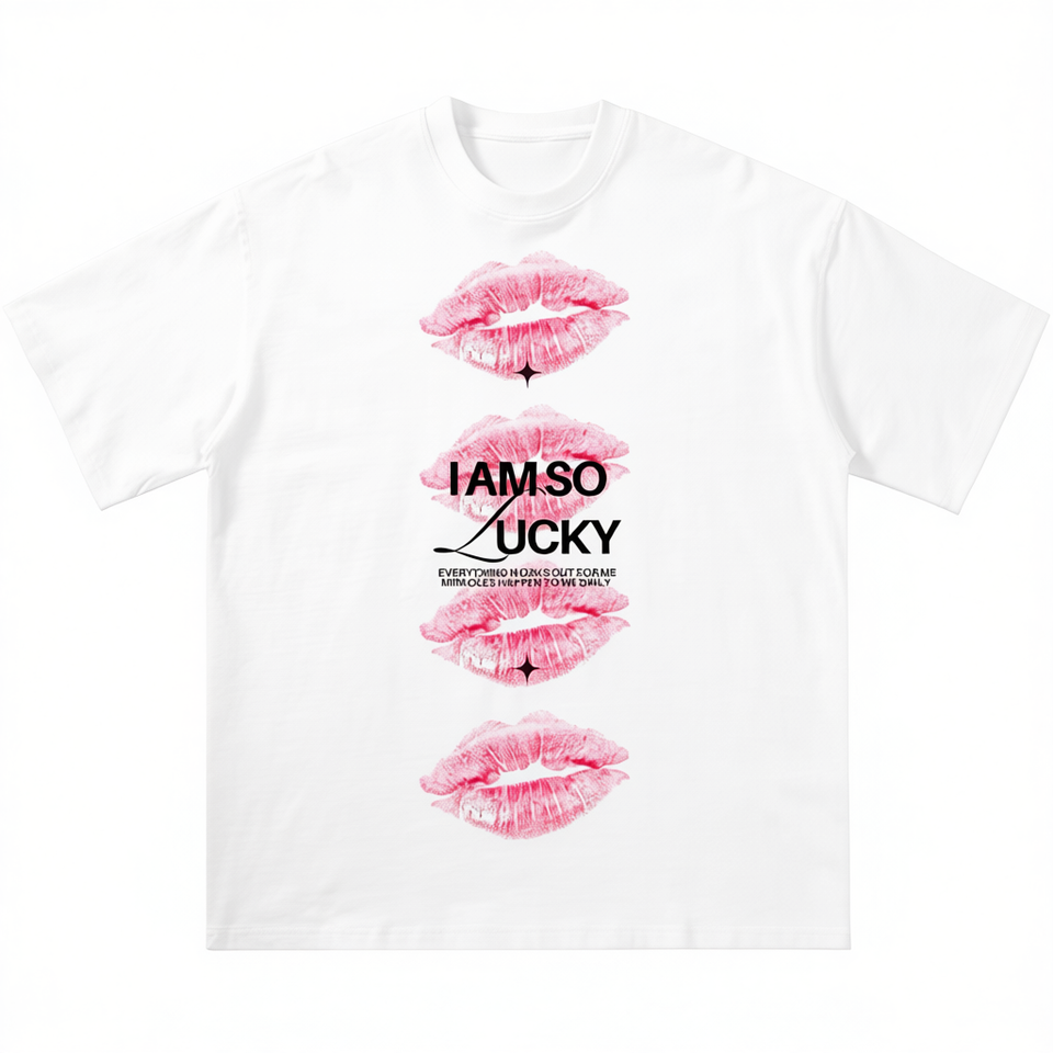 T-shirt con stampa grafica I Am So Lucky per bambini, a maniche corte, oversize, in cotone, streetwear, girocollo, vestibilità regolare