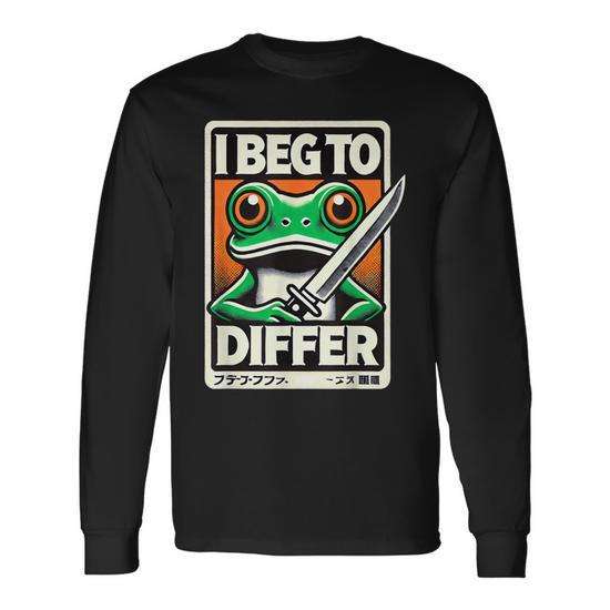 T-shirt a maniche lunghe con meme del rana "I Beg To Differ"