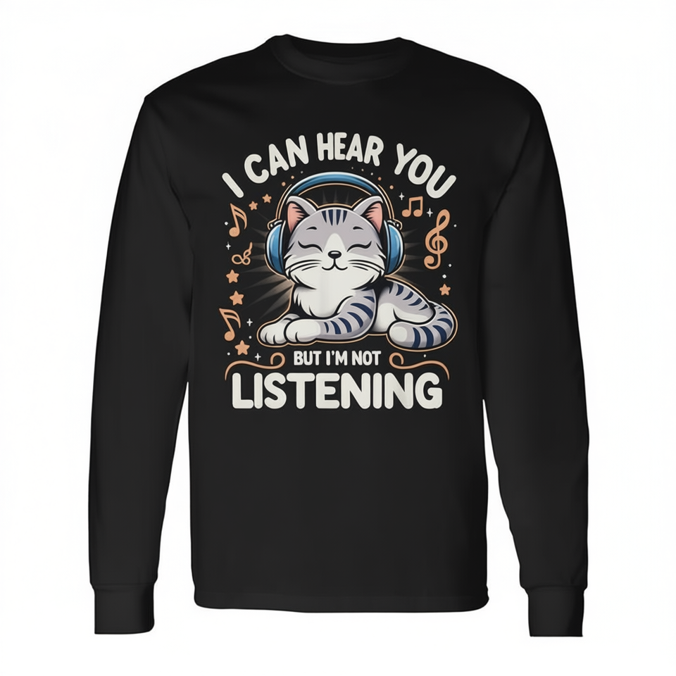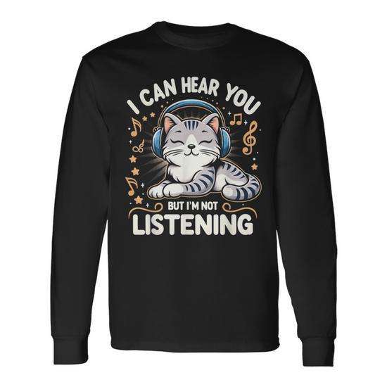 Posso sentirti ma non ti sto ascoltando - Maglietta a maniche lunghe con gatto con cuffie
