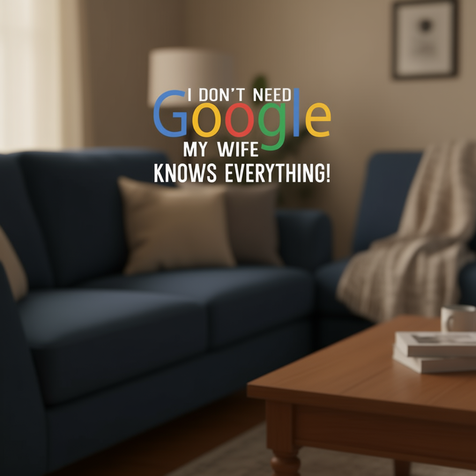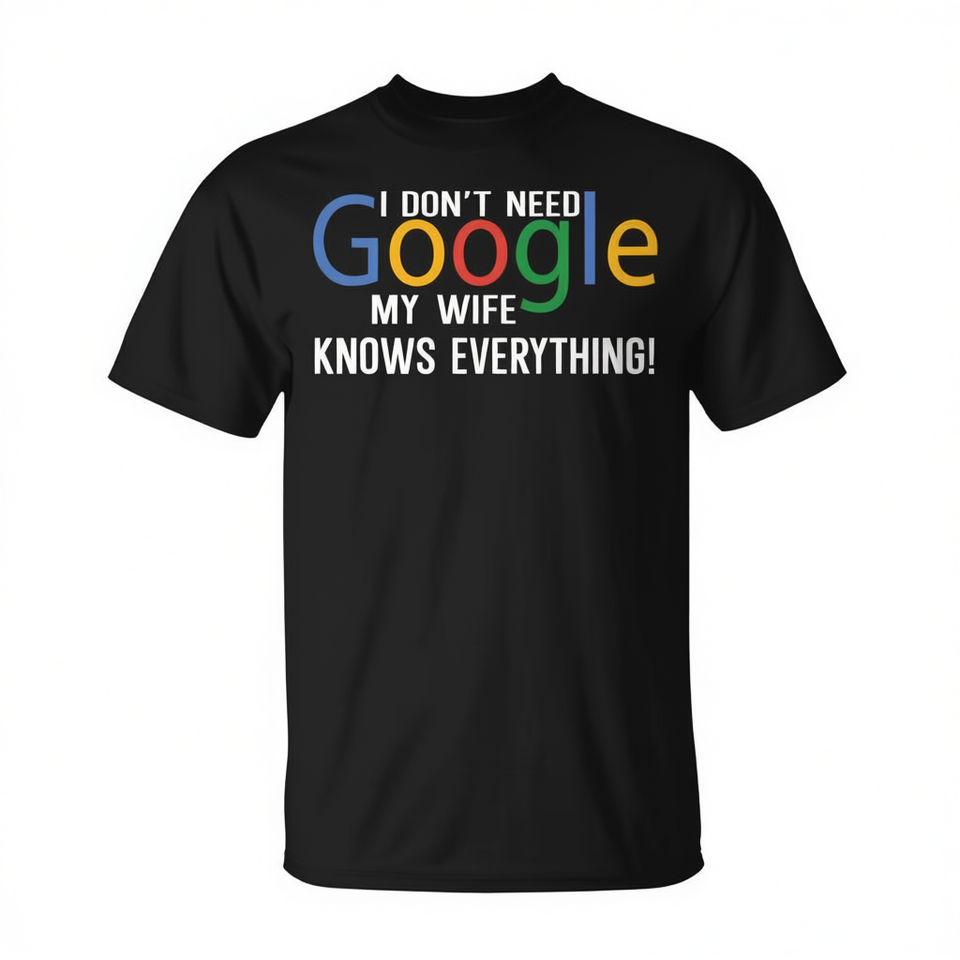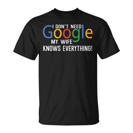 T-shirt I Don't Need Google My Wife Knows Everything a maniche corte, girocollo, unisex, per adulti, promozionale